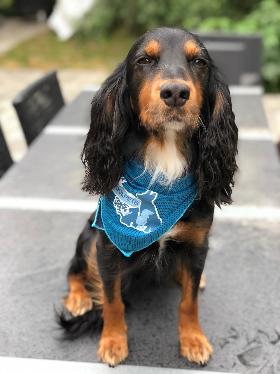 Sol & Sommer En cooling bandana fra CoolPets er en simpel, enkel og effektiv måde at køle din hund ned på. Du kan bruge den overalt. Både hjemme i haven, i bilen, eller hvis du har din hund med på ferie. Sådan bruges den! Bandanaen skyldes i koldt vand og vrides. Så ryster du den i luften et par gange (luften hjælper til at køle bandanaen ekstra ned). Og så giver du din hund den på. Bandanaen er fremstillet af et materiale, der holder på fugten, så din hund køles så længe som muligt. Kan vaskes ved 30 grader.