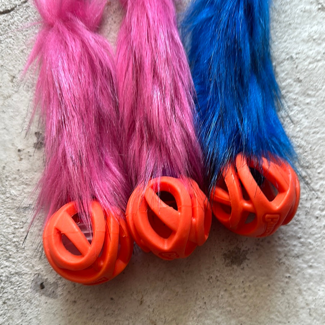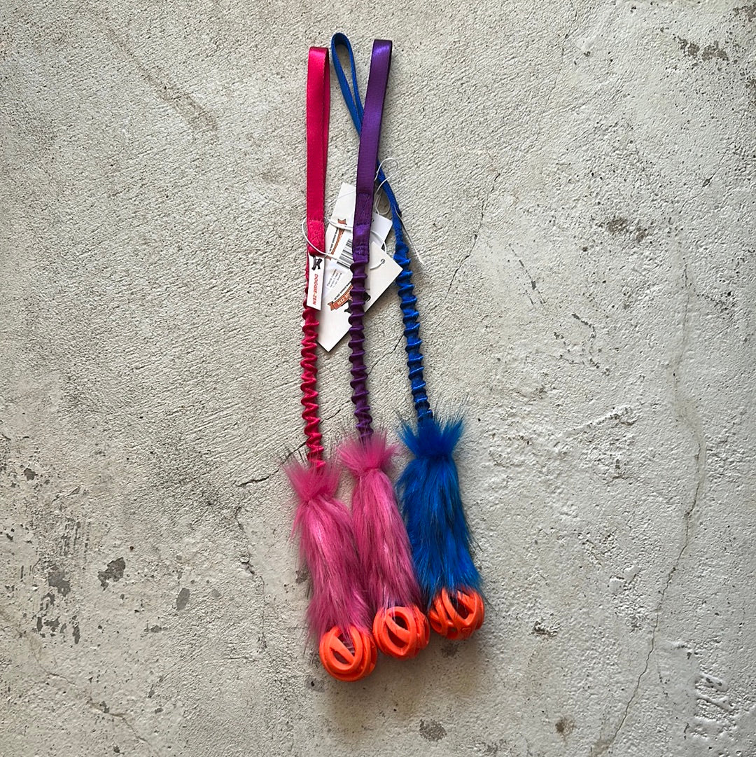 Lille stykke trækkelegetøj med kunstpels og den velkendte bold fra Chuckit Breathe. Kan nemt gemmes i hånden. Størrelse: Total længde: ca 55 cm Håndtag: ca 40 cm Pelsdel: ca 10 cm Bold: 5 cm