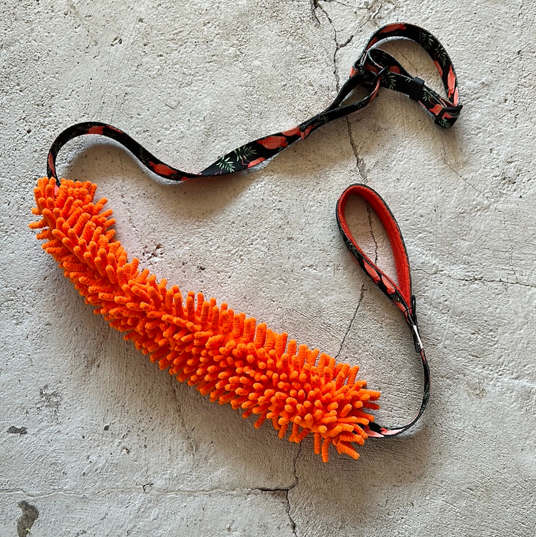 Agilityline med hålsbånd og bide/trækkestykke. Super lækker snor til f.eks. konkurrencer, så man altid har legetøjet ved hånden.