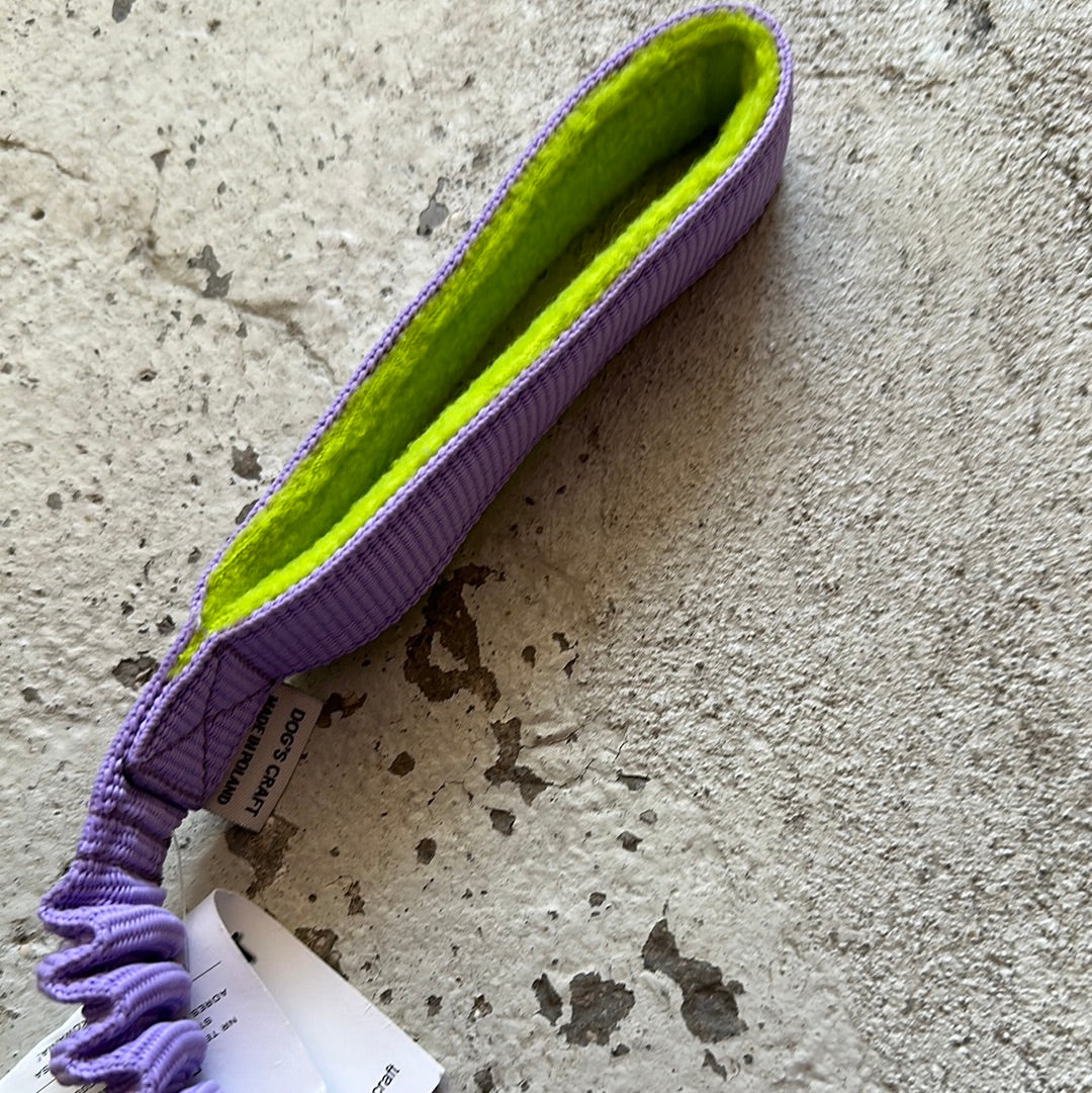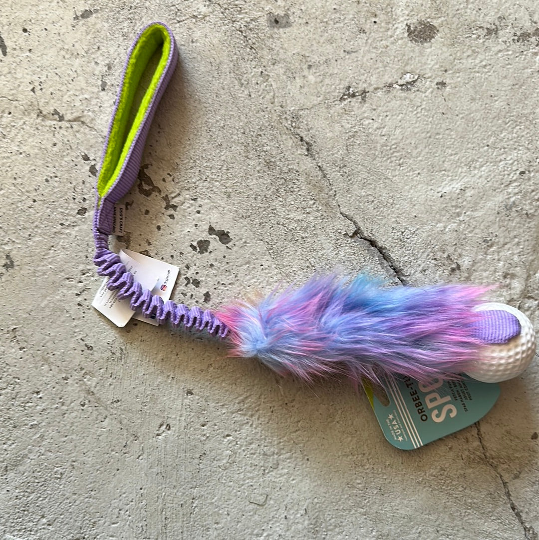Trækkelegetøj med elastisk. Bidestykke er kunstpels. Bolden er den velkendte bløde golfbold fra Planet Dog.