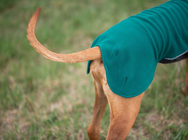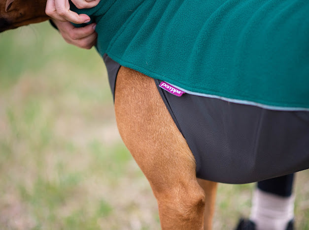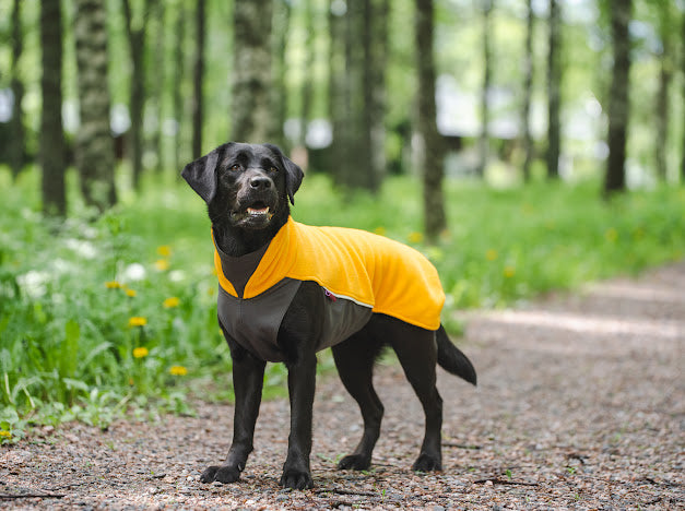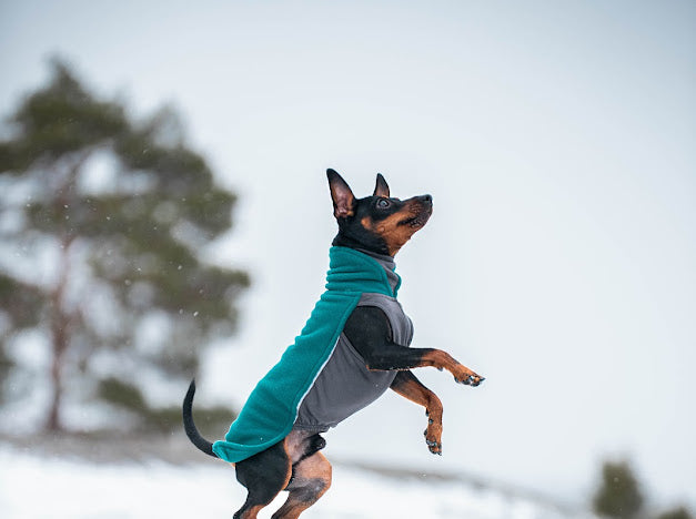 JumppaPomppa er en varm og alsidig fleecejakke til helårsbrug. Overdelen er lavet af antistatisk og højelastisk fleece, som gør jakken nem at tage på. Undersiden er lavet af vandafvisende termisk trikot, som beskytter hundens mave og bryst.