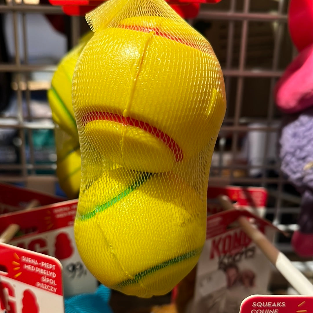 Den fedeste bold fra KONG. Samme størrelse som en klassisk tennisbold, lavet i gummi så den er skånsom mod tænderne. Med piv i, nem at få til at pive. Kommer 2 stk i en pakke. Hundens nye yndlingslegetøj. Farverne er vilkårlige i pakken.
