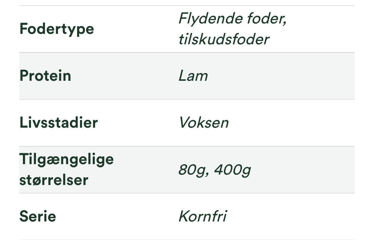 Enkelt protein kilde: Lam som den første og eneste proteinkilde.