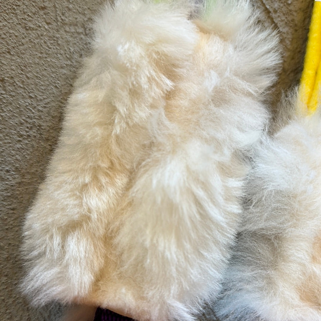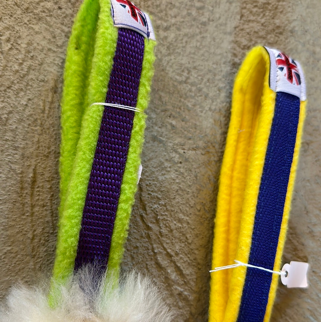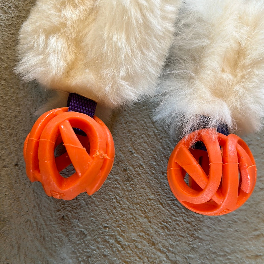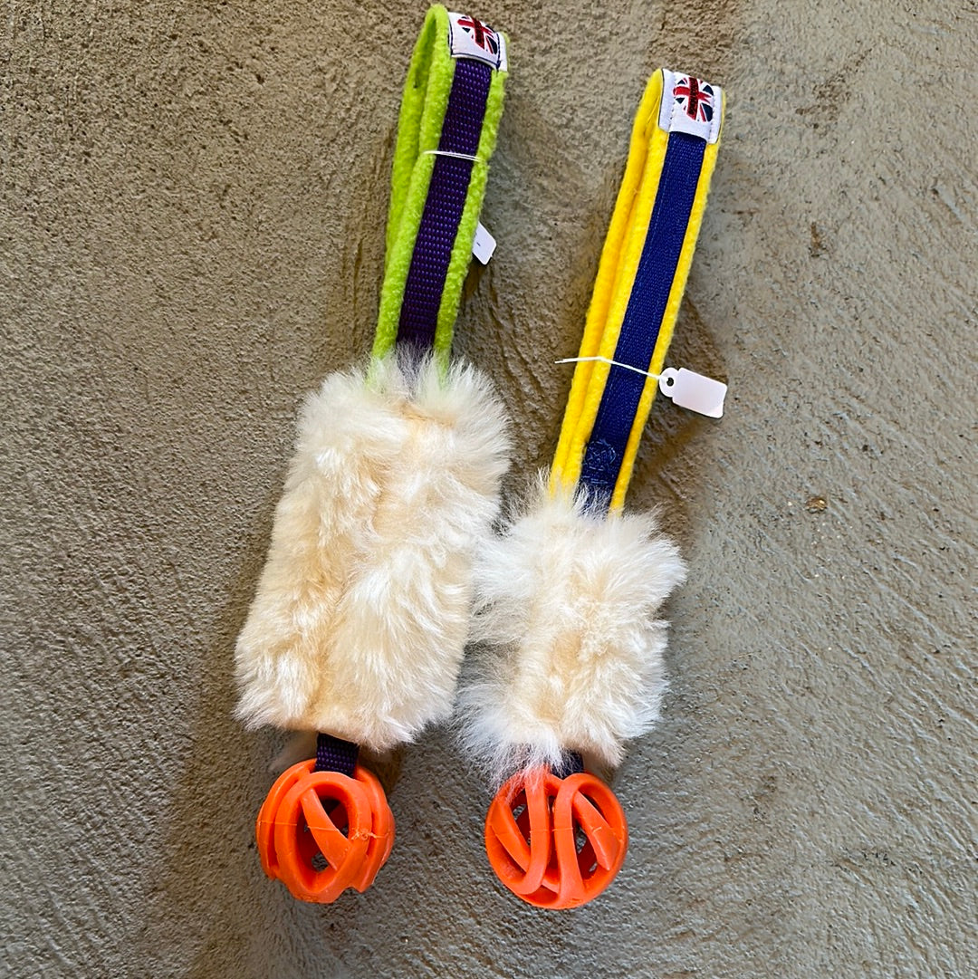 Lille stykke legetøj der nemt kan gemmes i hånden. Pelsen er lammeskind, håndtag fleece. Bolden er Chuckit Breath Right i XS.