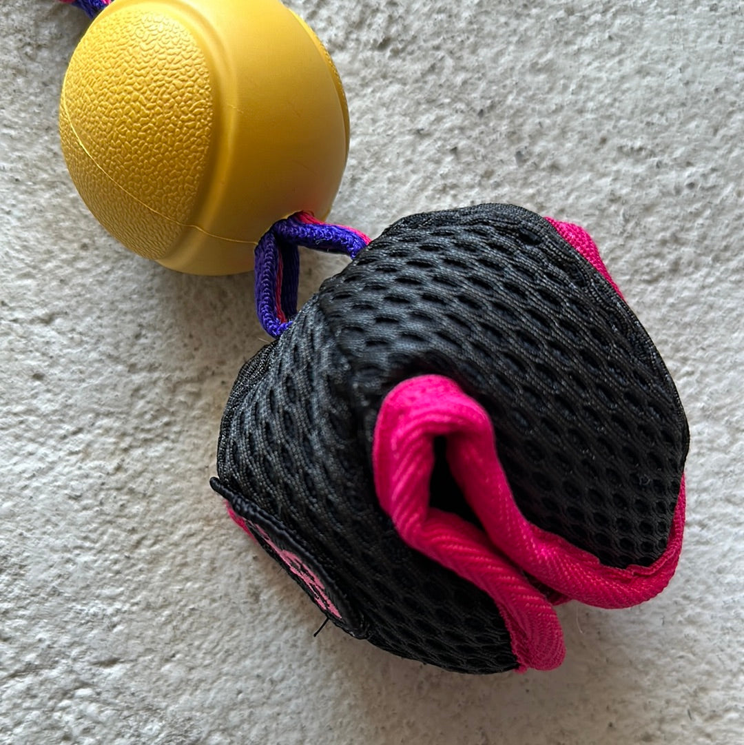 The Power paws pocket is another great addition to the range designed and inspired by team ambassador Sam Lane. Based on a Small paws pocket with the rubber ball and handle attached at the back it makes it the perfect treat toy to be thrown where you want it. All the great use for your dog to have the ball to anchor the toy to get the treats from the Paws Pocket. Having the extra weight allows the treat toy to land more accurately and not bounce away obscurely. We all have had frustration with many light weight treat pocket items blowing in the wind or rolling away in a funny angle ruining that perfect reward line! Approx total length 33cm Please remember as with any Paws Made toy this is intended for supervised interactive play and not a chew toy! Please note colours may vary slightly