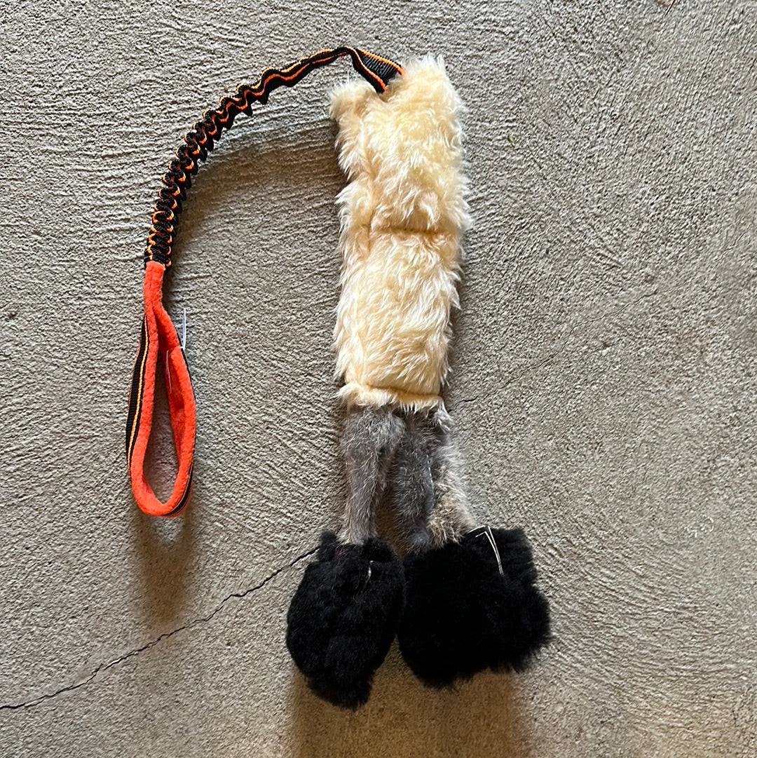 Sjovt legetøj til hvalpen består af stort bidestykke i kunstpels og 4 ender i lam.