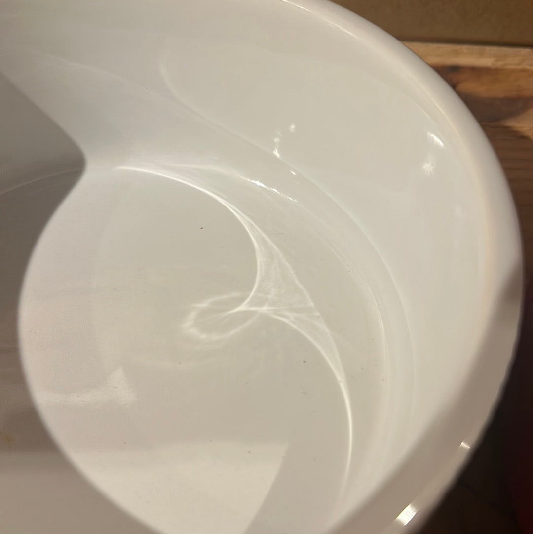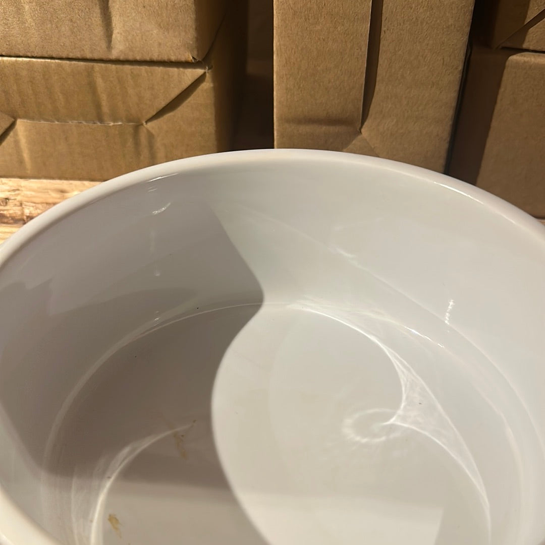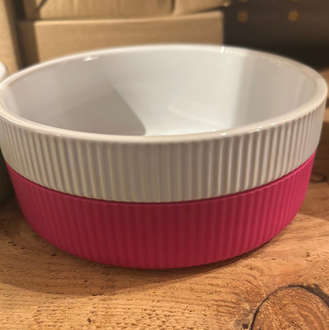 Flotte hvide skåle i keramik med underdelen i silikone antislip. Kan vaskes i opvaskemaskine og silikonedelen kan tages af. Fås i to størrelser small og medium