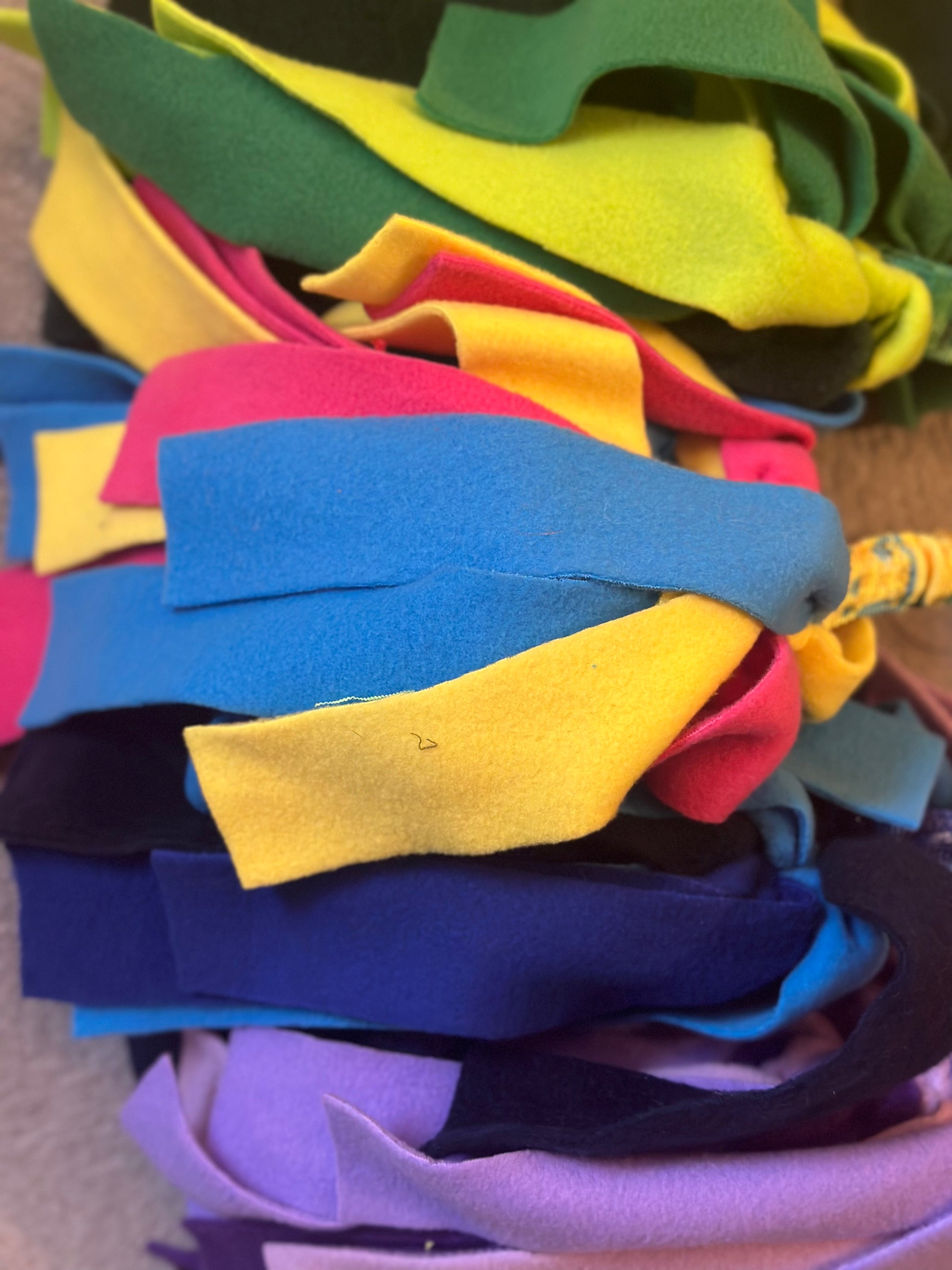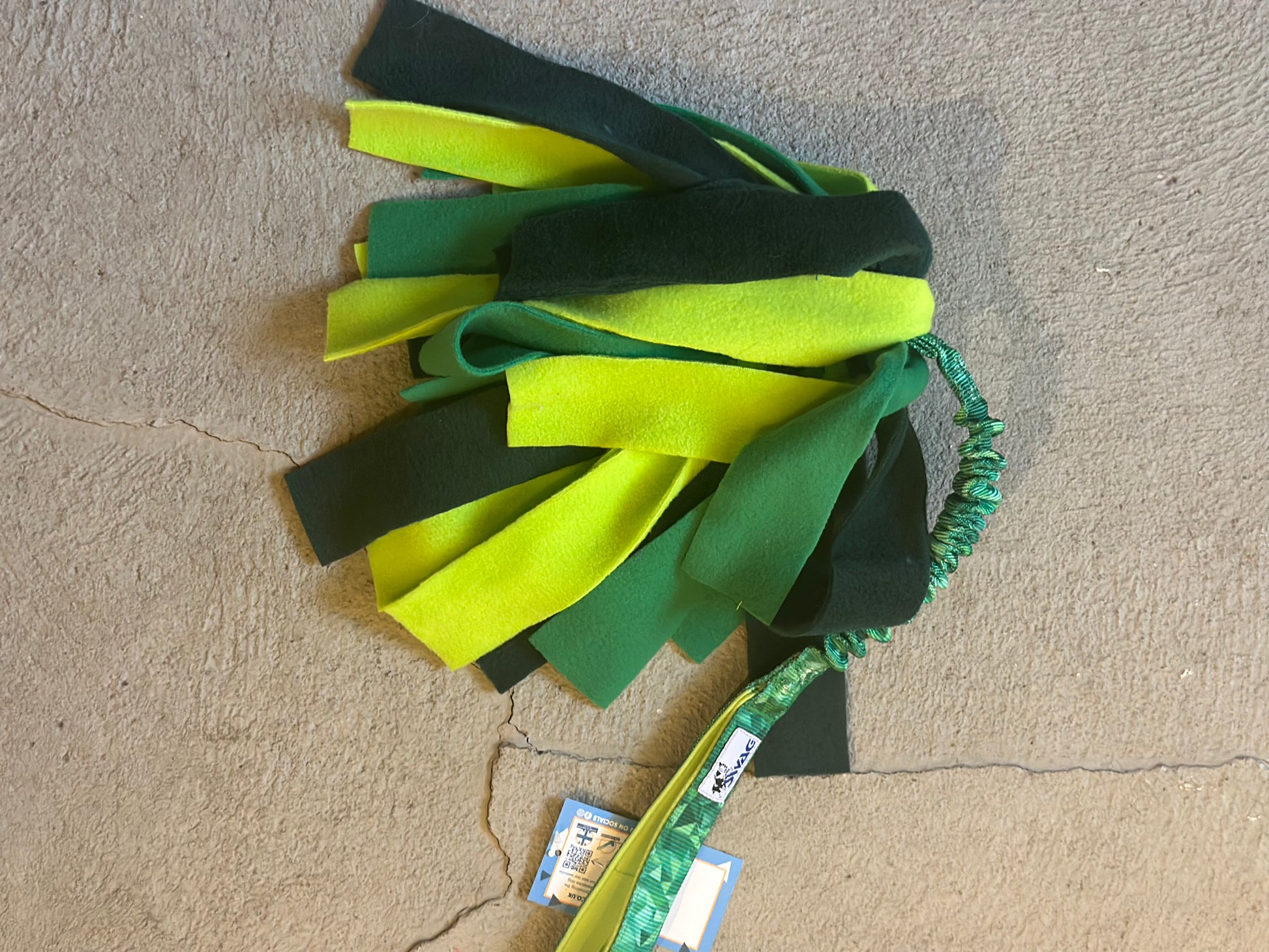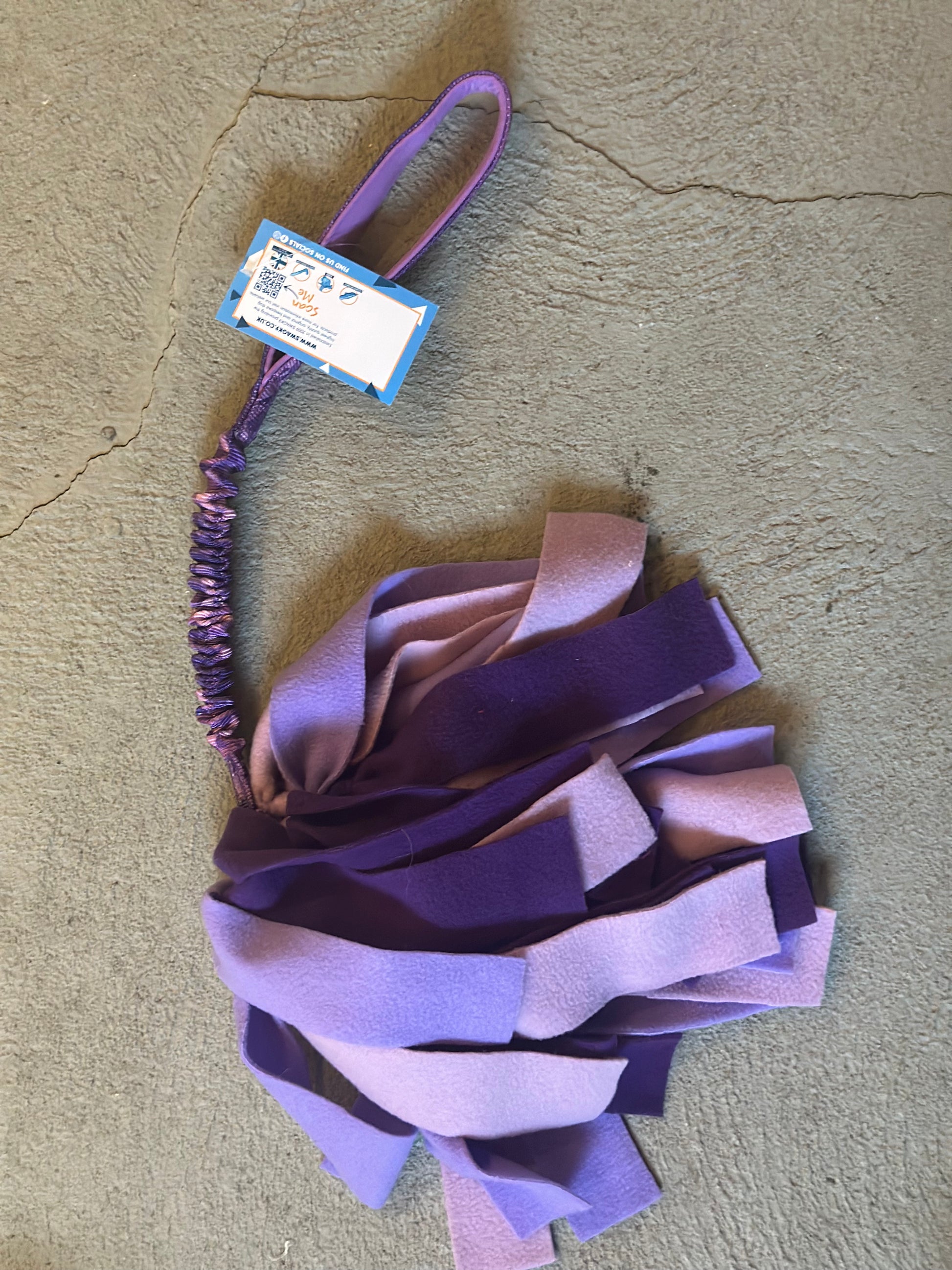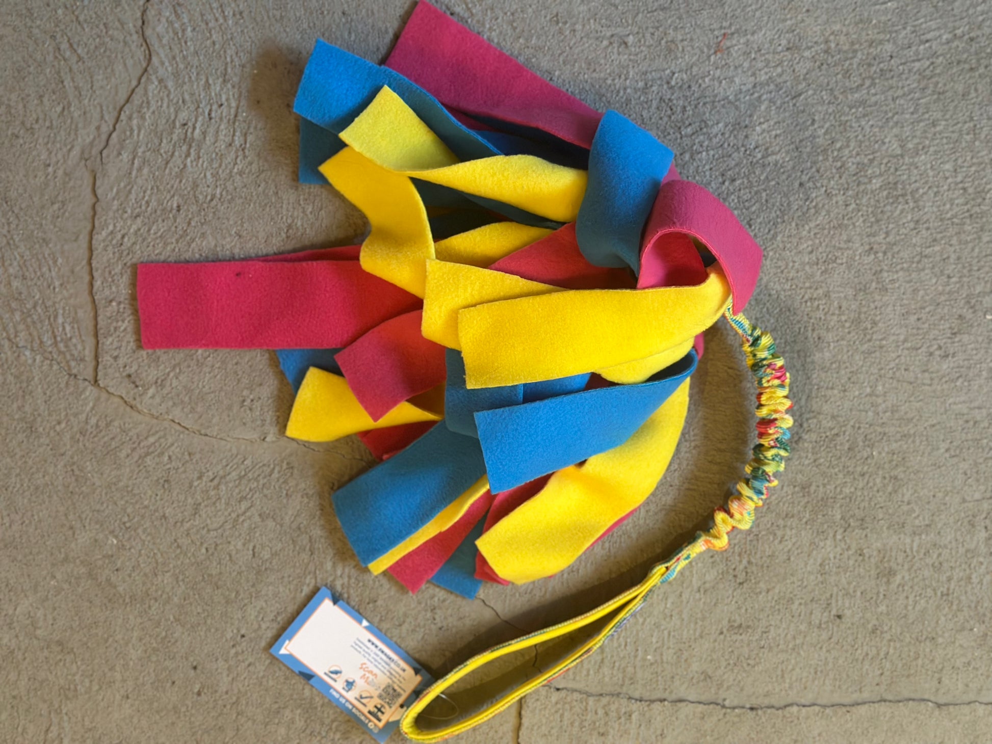Trækkelegetøj med elastisk del som skåner hund og fører ved trækkeleg. Fleece delen er motiverende ved bevægelse og er velegnet til f.eks hvalpe