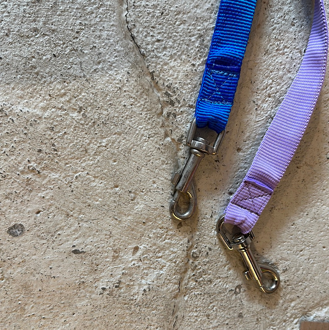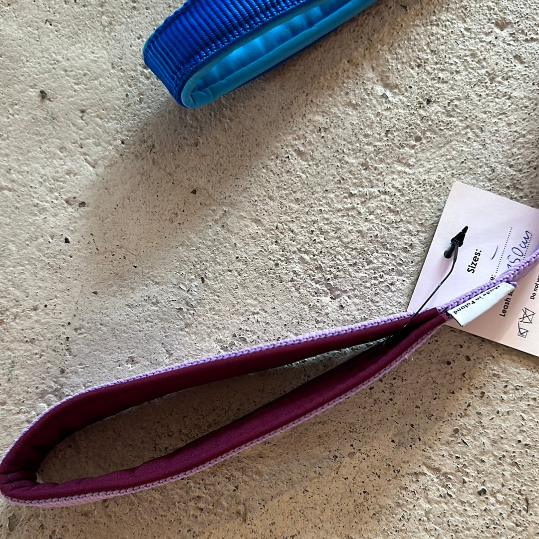 Hundeline med elastisk stykke, bidestykke i lammeskind og karbin som nemt kan sættes på halsbåndet.